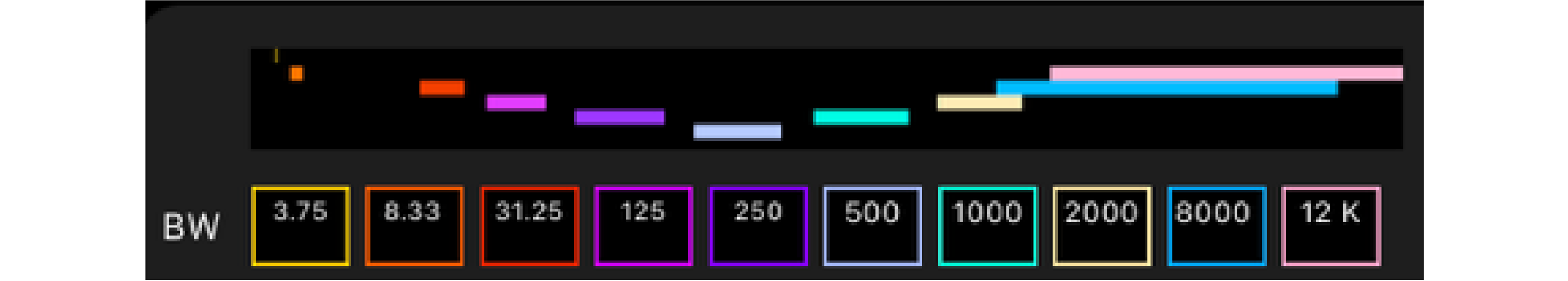 バンド1(左端:黄色)~バンド10(右端:ピンク色)