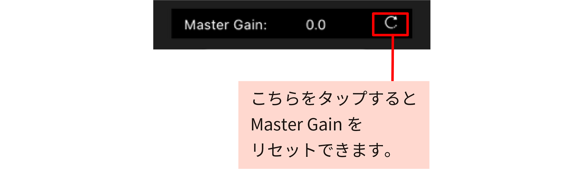 Master Gainのリセットボタンをタップすると、数値をリセットできます。