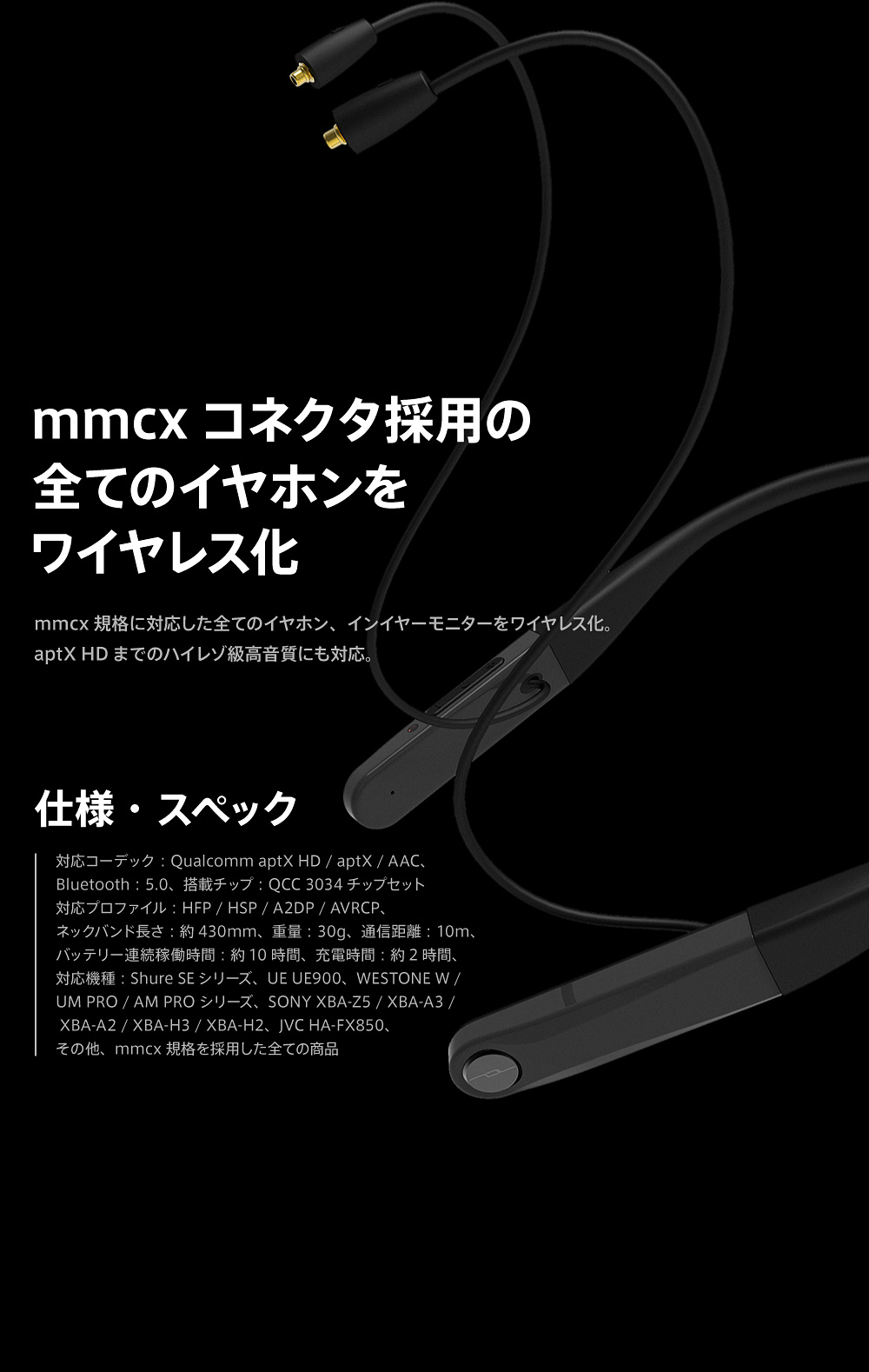 mmcx 規格に対応した全てのイヤホン、インイヤーモニターをワイヤレス化。