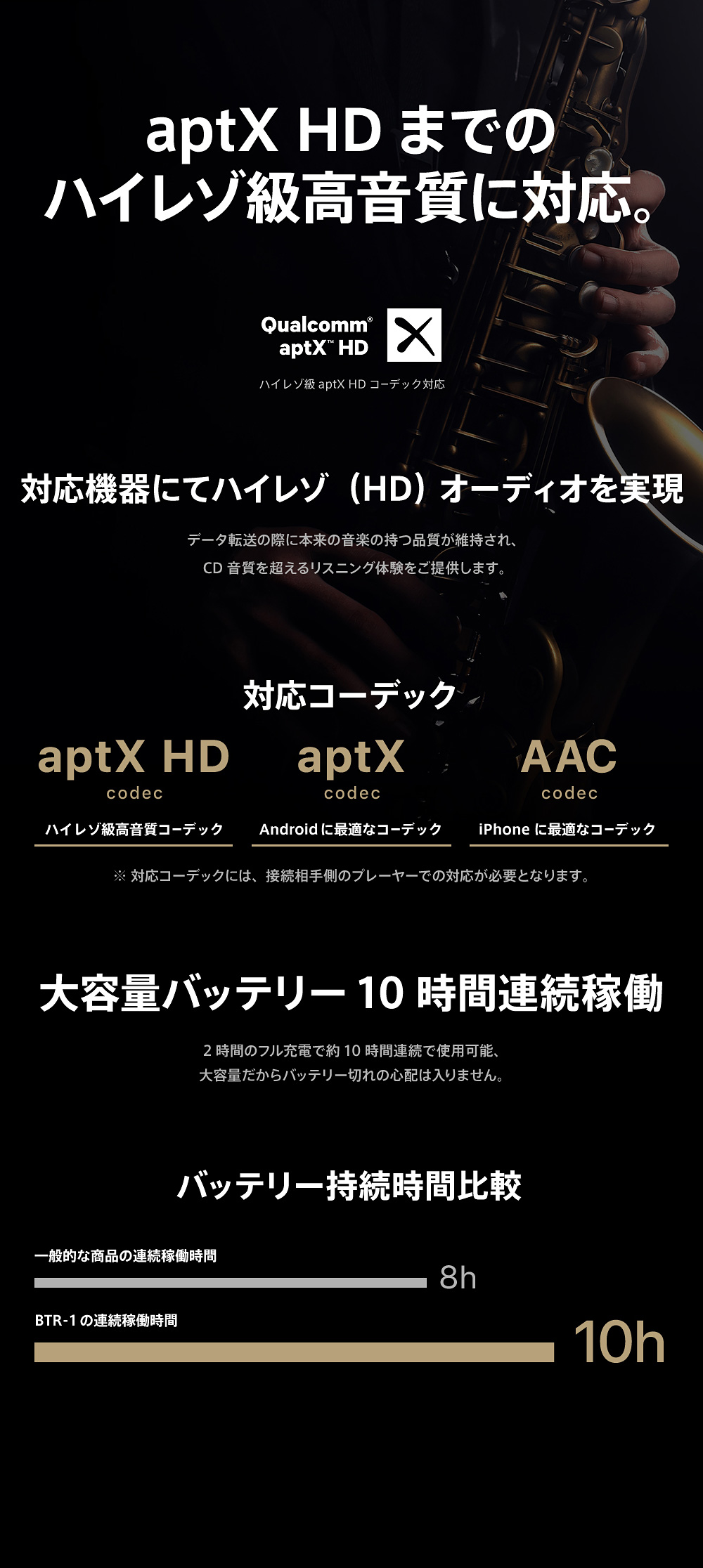 対応コーデック:Qualcomm aptX HD / aptX / AAC、