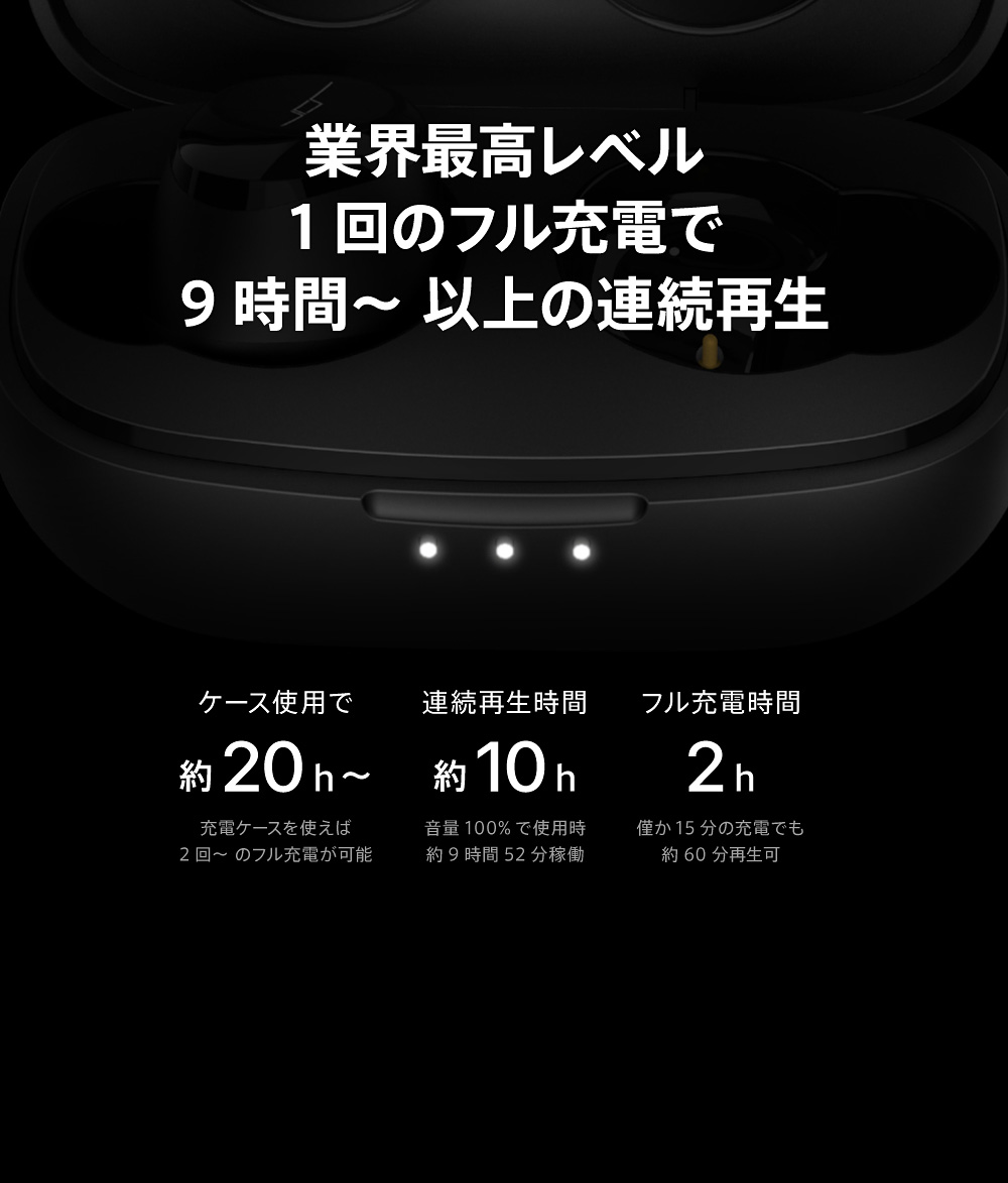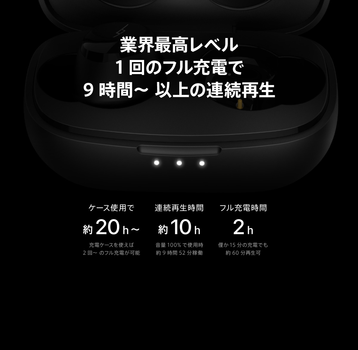 バッテリー連続稼働時間:約9時間、充電時間:約2時間、