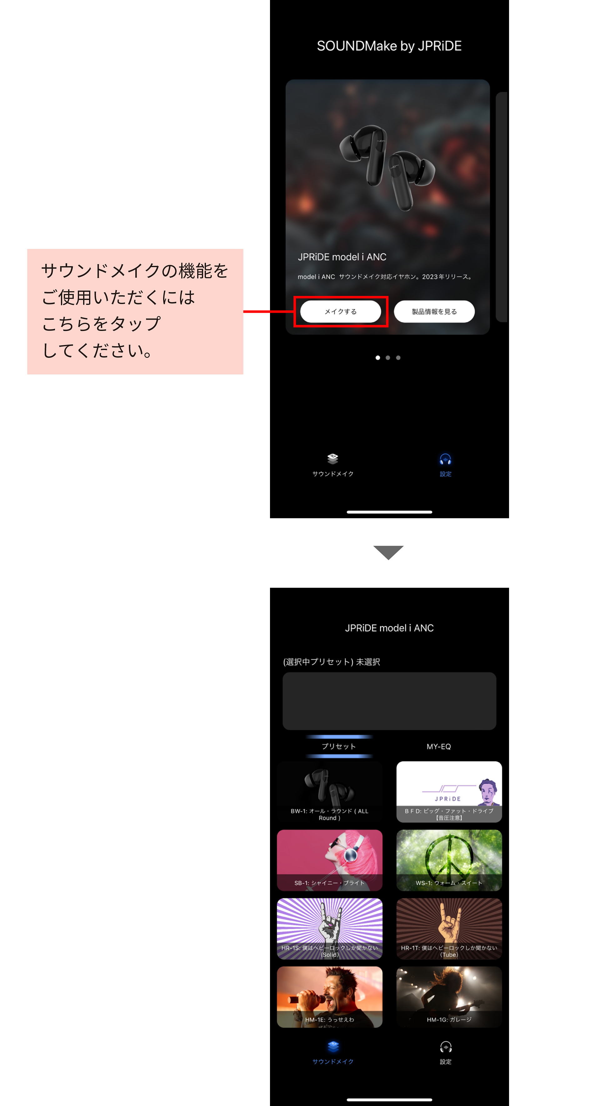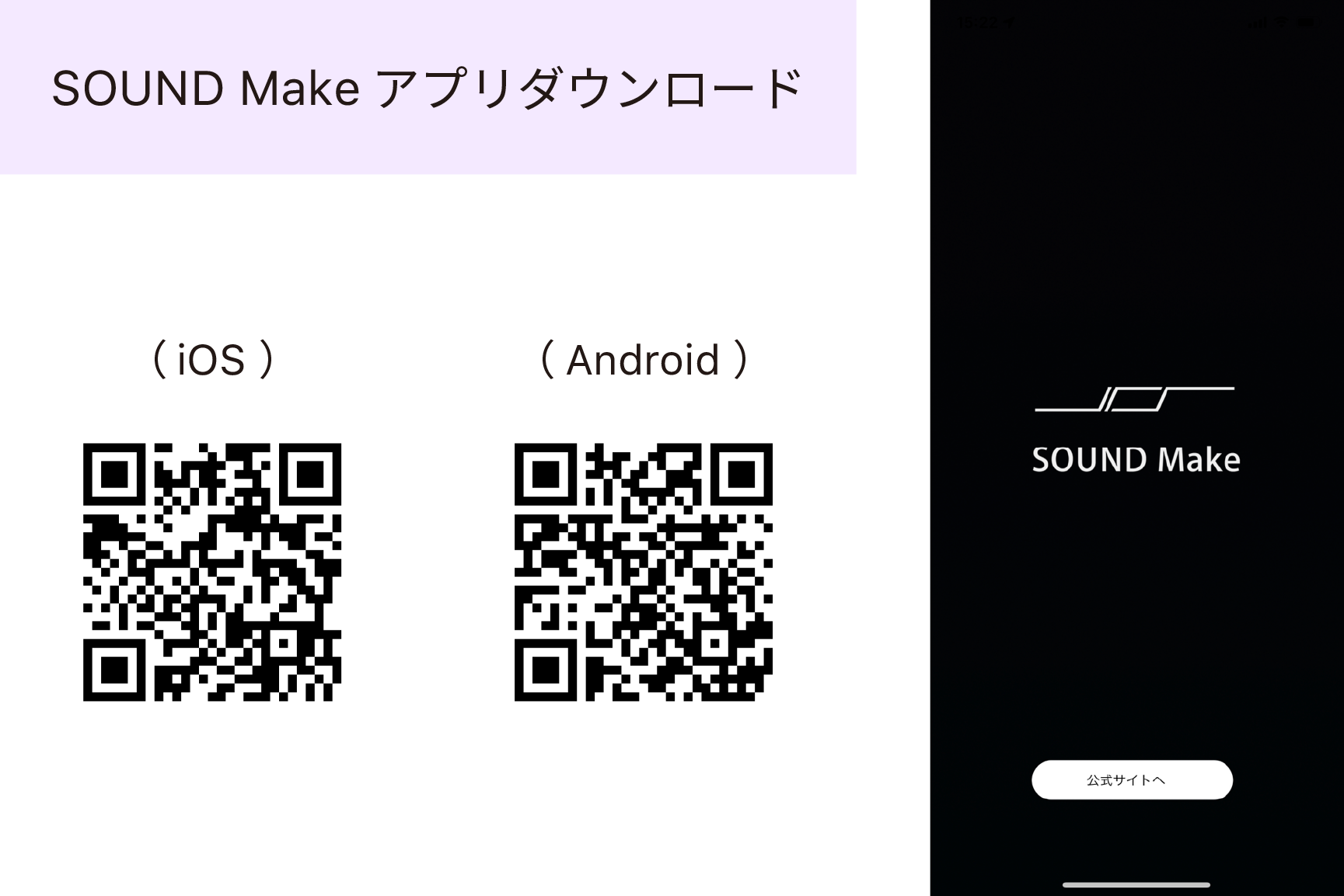 APPストアやGoogle Playストアにて『 soundmake 』と検索していただくか、
