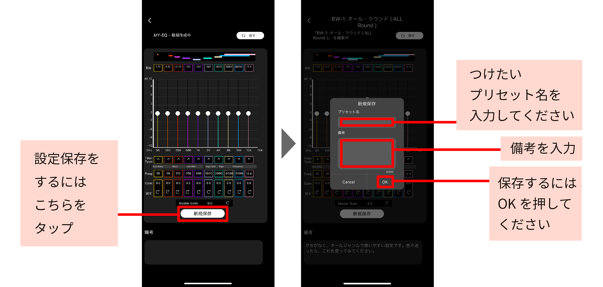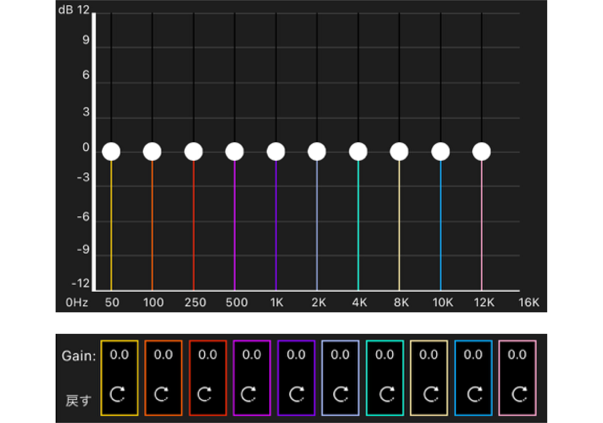 Master Gainは、各MY-EQ毎の音量を +12 ~ -100の範囲 で大きくしたり、