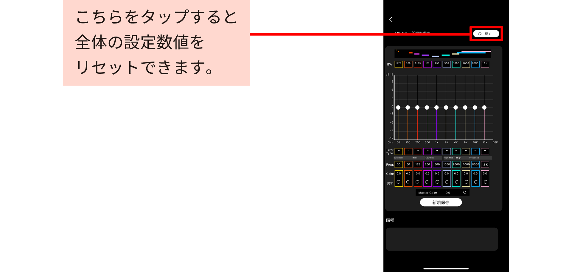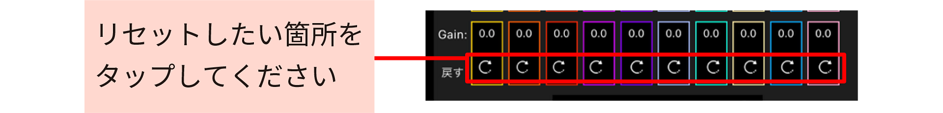 Master Gainのリセットボタンをタップすると、数値をリセットできます。