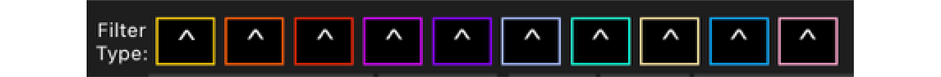 バンド1(左端:黄色)~バンド10(右端:ピンク色)